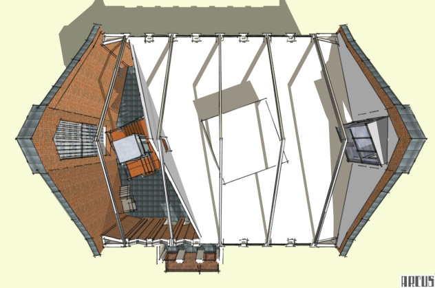 Een sober kerkgebouw uit de 50er jaren gelegen in een woonwijk vroeg een nieuwe bestemming. Een ruime entree, waarin alle karakteristieken van de kerk nog herkenbaar zijn en een bescheiden invulling met drie appartementen is het antwoord.