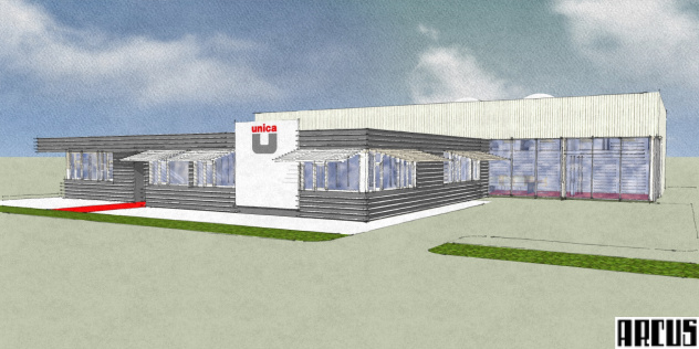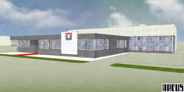 Een bedrijfscomplex uit 1978 als vele anderen: een ruime bedrijfshal met een bescheiden kantoorvleugel. Ondanks de ligging aan de toegangsweg tot bedrijventerrein Hoendiep, een weinig in het oog lopende gebouw. Meer projectmatig werken vroeg een ingrijpende verbouwing. Een gevelraster van aluminium lamellen die zowel als zonwering dienst doen als inbraakwerend werken, maakt het tot een levend gebouw.